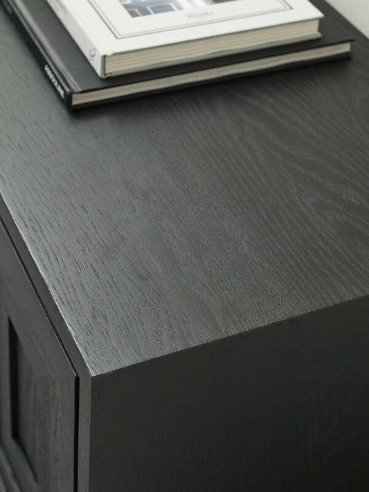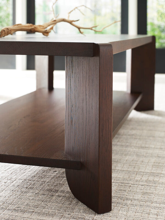 Solid oak, exposed joinery, and metal accents put form and materials at center stage.
