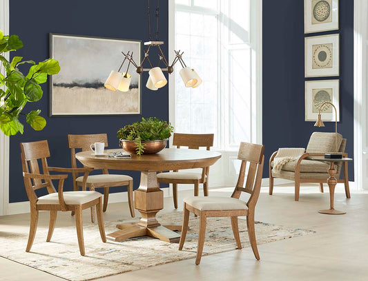 St. Lawrence’s living room groups have unique charms. The Post group has round, tapered legs that extend to the tabletop, while the Turned group echoes the bold, banded shapes of our dining tables. Even more contemporary, the Metal group’s mix of soft, warm-hued metal with solid oak feels fresh yet relaxed.