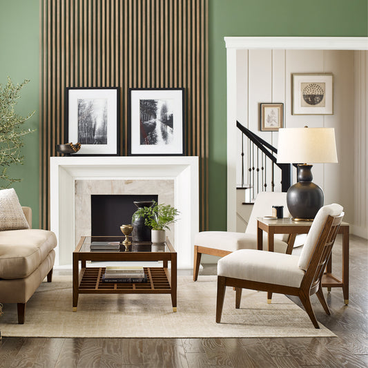Surrey Hills offers two distinct upholstery options. The Wood-Frame sofa group reimagines a Mission settle in slab-like white oak, and a beautiful Tuxedo-Arm group updates the wraparound tuxedo style with ultra-soft deep seating.