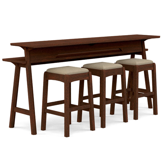 Recycled fabrics and a leather alternative lend their sustainable beauty to hardwood pieces and seating.
